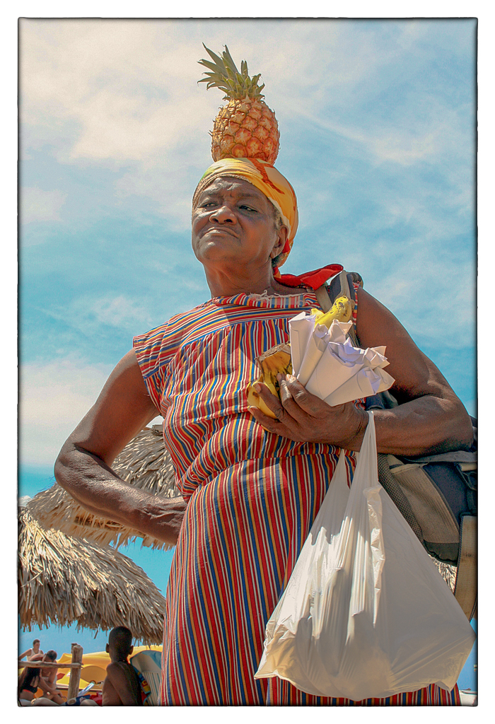 Henne kan man köpa frukt av på stranden Foto: Achim Rödner